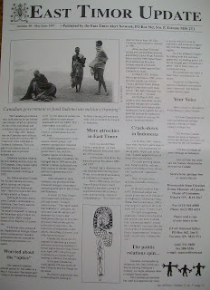 East Timor Update, which was replaced in subsequent years by e-mail only notices and newsletters from two successor groups to the East Timor Alert Network. Coverage includes the December 1996 Nobel award to Bishop Belo; mining in Indonesia; a Canadian parliamentary delegation; and abortive Canadian government consideration of military ties with Indonesia.